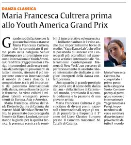 Sacrifici ricompensati e grande soddisfazione personale per la nostra brillante studentessa atleta Maria Francesca Cultrera classe 3B LCE per il primo posto conseguito nella categoria Senior Contemporary nel prestigioso concorso internazionale di danza classica “Youth America Grand Prix” tenutosi a Parigi. Sempre orgogliosi dei nostri studenti🤩